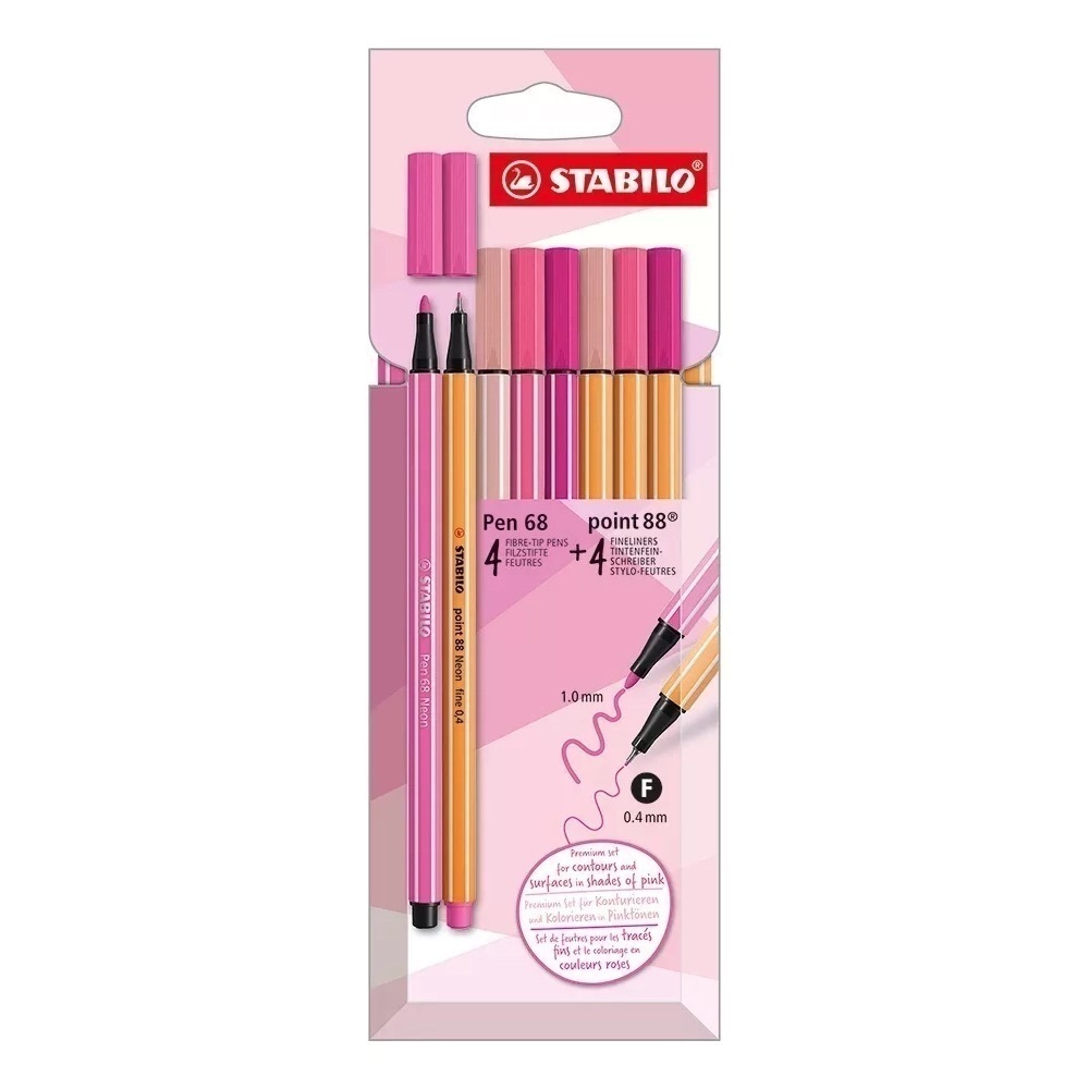 Kit de Canetas Stabilo Pen 68 + Point 88 - Tons de Rosa (8 Unidades)