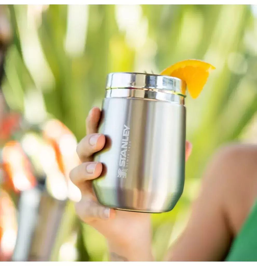 O modelo do copo térmico Stanley é ideal para manter sua bebida gelada até o último gole por 5h ou até 20h, adicionando gelo.