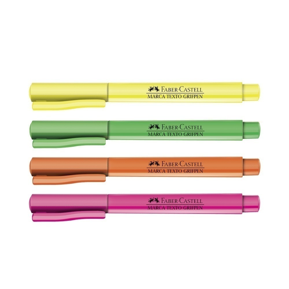 O Marca Texto Grifpen da Faber-Castell possui a ponta chanfrada, que possibilita traços finos e grossos a depender da posição que a ponta é colocada no papel. Seu formato triangular garante maior conforto ao escrever e as cores são superfluorescentes. Ah, a tinta não passa para o outro lado da folha viu?