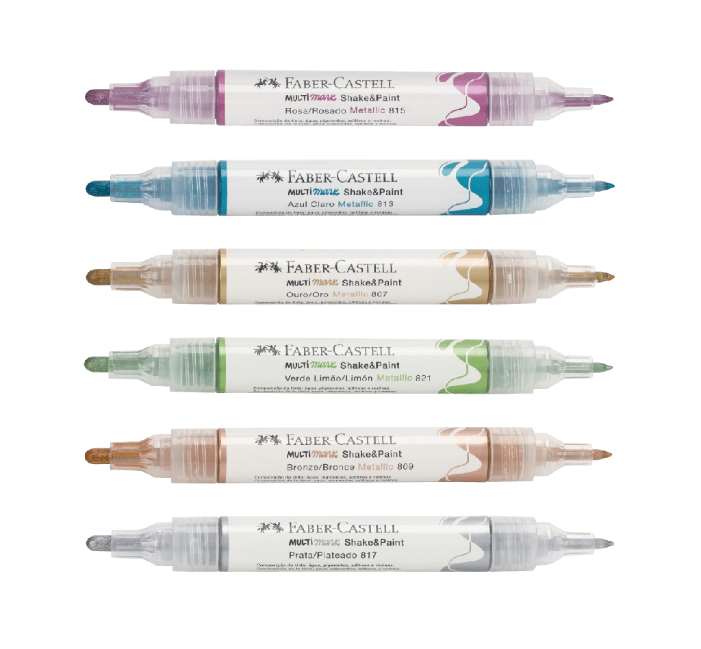 A linha de marcadores criativos MultiMark Faber-Castell, é a combinação perfeita para jovens, entusiastas ou amantes da arte, que buscam um produto de design moderno, simples e prático, capaz de dar asas a imaginação em uma infinidade de superfícies. É possível customizar peças e acessórios, criando obras únicas de forma rápida e fácil. Feito com os mais altos padrões Faber-Castell e qualidade excepcional em todos os componentes. As tintas são miscíveis (proporcionando uma cartela extensa de cores e técnicas), a base é água, elaborada com pigmentos para assim garantir uma cobertura superior e as pontas estruturadas para grande durabilidade e proporcionar firmeza na utilização (2 em 1, duas pontas, 1.0mm para traços finos e detalhes / 3.0mm ponta versátil e ideal para preenchimento). Especificações: Marcador Base Água. Multisuperfície. Mechanismo Shake&Pump. Duas Pontas: 1.0mm e 3.0mm. Ideal para artesanato. Perfeito para customização e personalização.