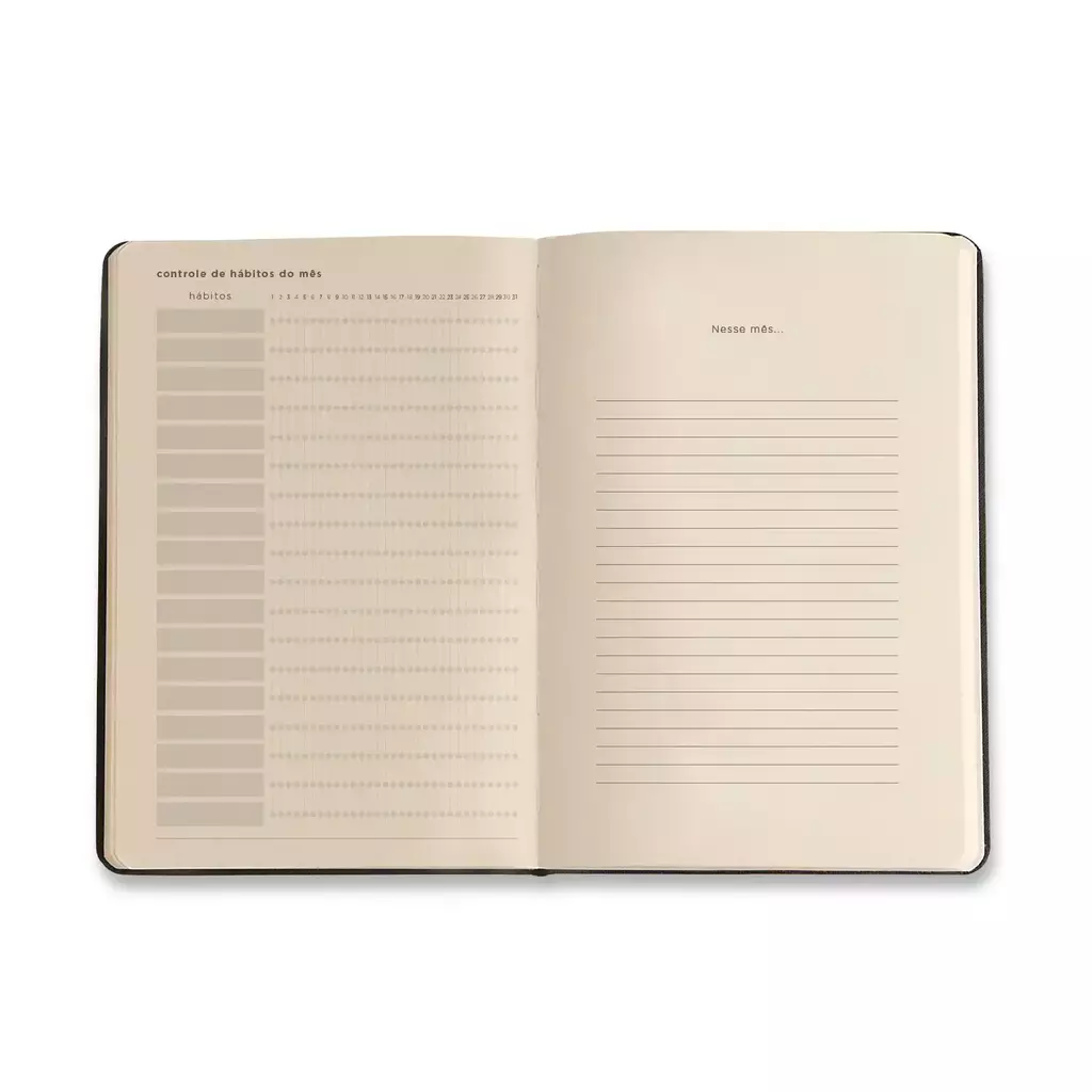 Este planner tem capa dura, cantos arredondados, elástico para fechamento, fita marcadora de página e bolsa pasta para guardar cartões, entre outros. São 208 páginas em Papel Pólen®Natural.